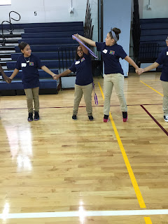 Team building activities helped begin or develop friendships and rapport. In As the Wind Blows, students stand in a circle with one person in the middle. That person names an experience he or she has had and everyone who has had the same experience has to leave their places and find new ones in the circle. The last one standing takes the place in the middle. In another activity, each student tears off a length of toilet paper and has to give an adjective to describe him- or herself for each square of the length.