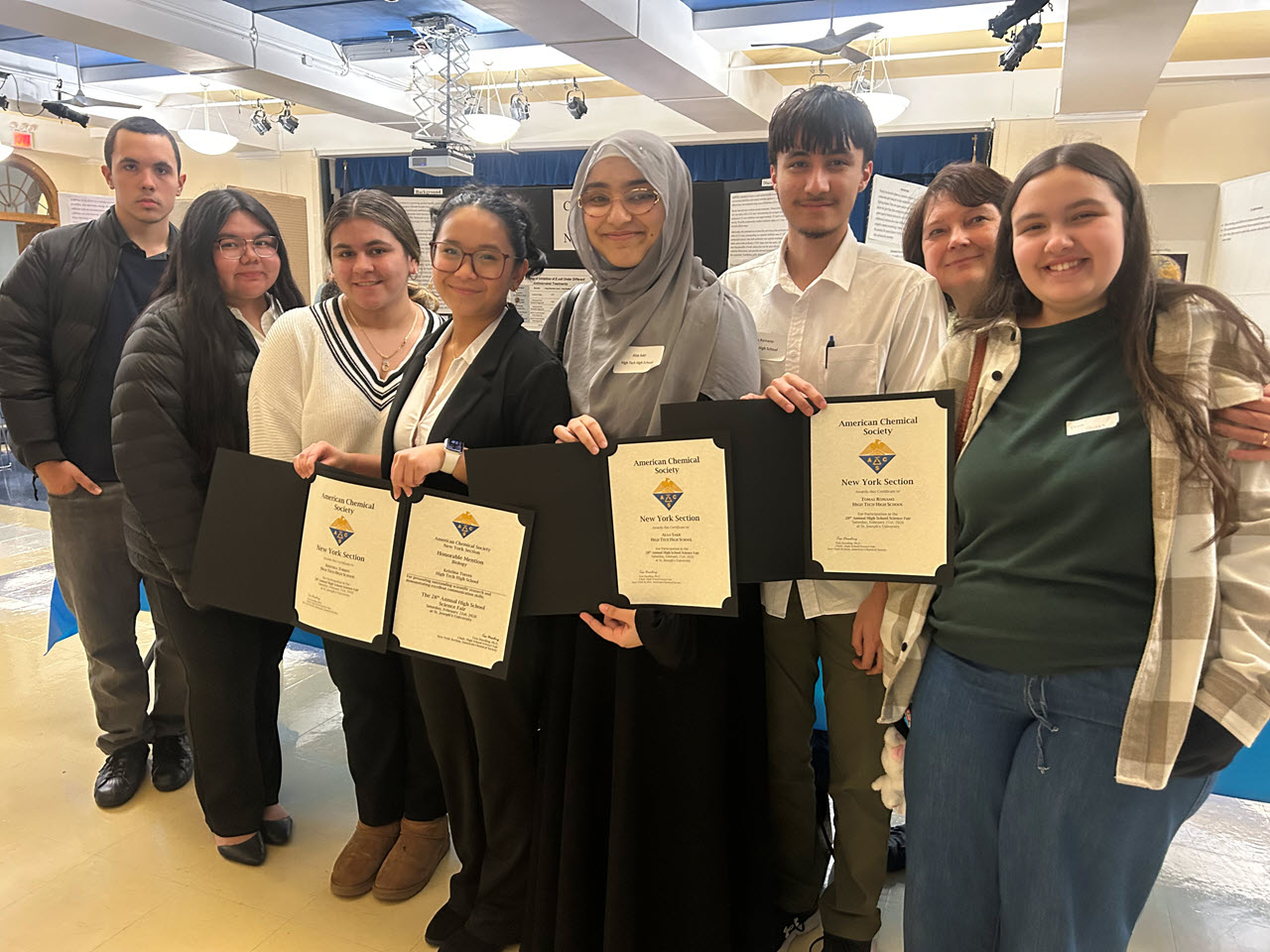 Freshmen Anna Matos and Giuliana Perez, as well as Juniors Nicole Sanchez and Ivan Viccaro attended this event as observers, along with Dr. Dmitri Lavlinski and Dr. Nina Lavlinskaia. While judges were deciding on the scores, everyone attended a lecture on How Molecules Come Together to Form Bioinspired Materials by Dr. Subhasish Chatterjee form St.Joseph’s University. Scientist explained various strategies utilized to compose new materials. All students concluded that participation in this event inspired them to do their own research or improved their presentation skills.