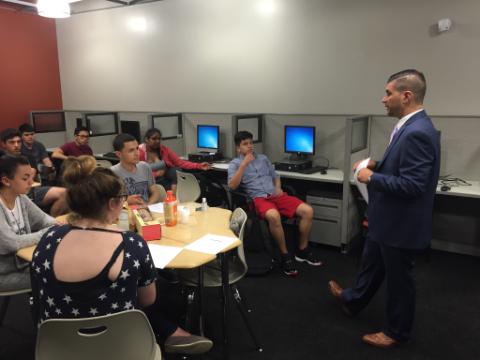 (North Bergen, NJ—May 28, 2015) The High Tech Business Department and Business & Technology Club invited a guest speaker, Christopher Perez, the Duty Manager—International Facility at the Newark Liberty International Airport, to offer a presentation at the APA building in the North Hudson Center, announced Dr. Joseph Giammarella, Principal of High Tech.