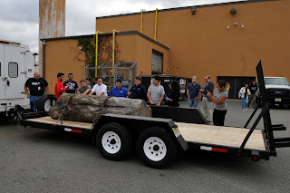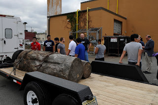 PVSC actively looks for ways to recycle the wood from trees removed from the river into something with a practical use. This past week, PVSC donated two large, fallen trees to High Tech High School in North Bergen. PVSC’s River Restoration Program removed both trees from the river after discovering them floating above the Great Falls in Paterson on Earth Day earlier this year.